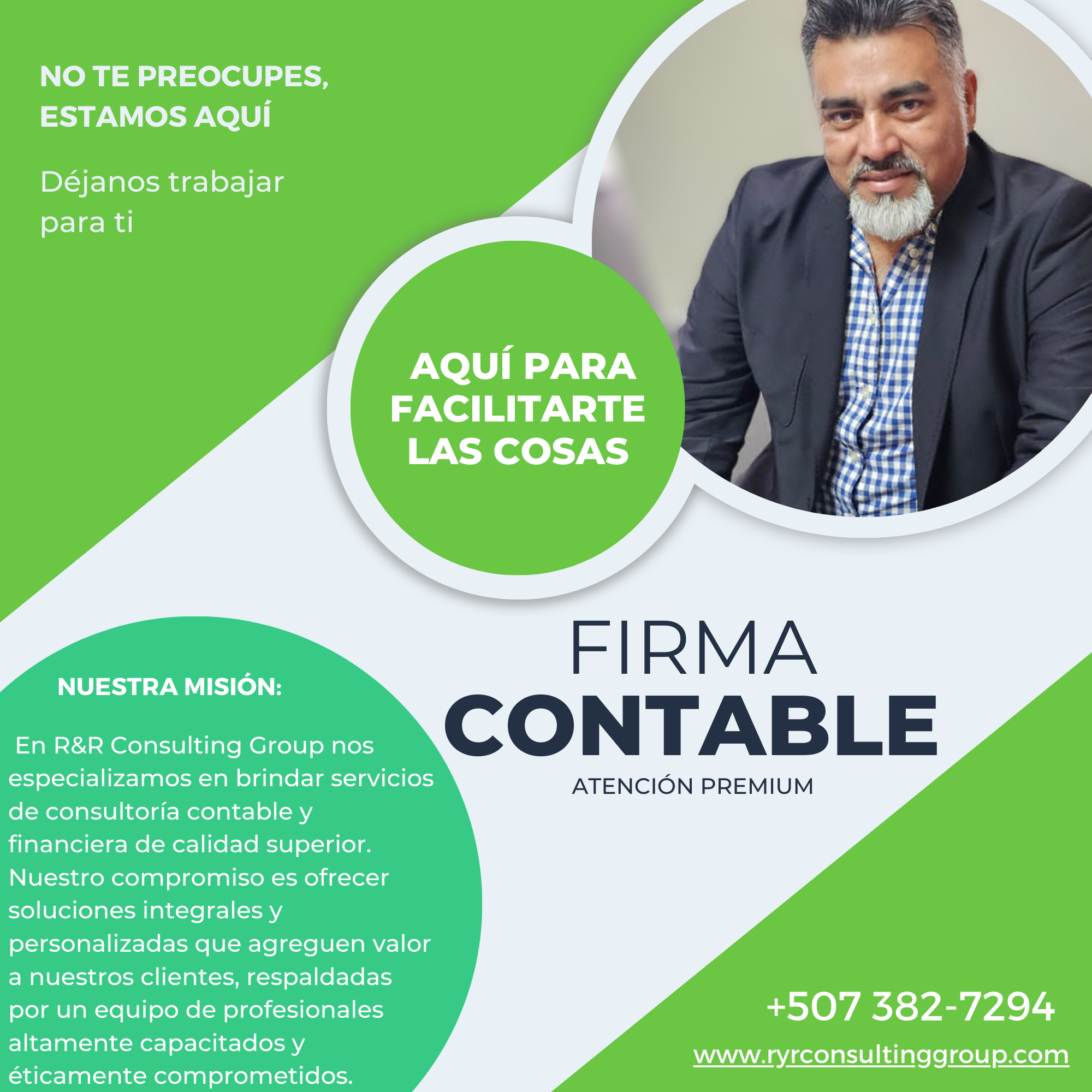 Somos una firma de consultoría contable y financiera con sede en Panamá, dedicada a brindar soluciones integrales y personalizadas a nuestros clientes. En R&R, nos comprometemos a proporcionar asesoramiento experto y confiable respaldado por un equipo de profesionales altamente capacitados y éticamente comprometidos. Nuestra misión es agregar valor a nuestros clientes ayudándoles a alcanzar sus objetivos financieros y a impulsar el crecimiento sostenible de sus negocios.